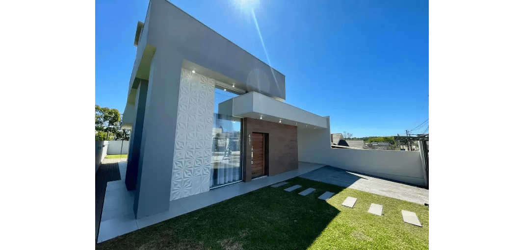 Casa plana com 3 dormitórios e amplo quintal! Linda residência térrea em alvenaria contemporânea, com destaque para o pé direito duplo na entrada, oferecendo amplitude e sofisticação logo ao chegar.